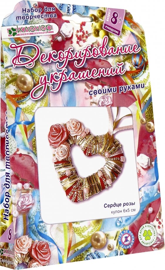 Данный набор поможет Вам сделать изящное украшение. Главный символ человеческой любви - сердце, выполненное в виде кулона, включает целый набор материалов, качество и цветовая гамма которых создают реальное ощущение гламурности изделия. Сочетание золотого стекляруса, шелковых разноцветных блестящих лент розовой гаммы, однотонных переливающихся бусин, современный и стильный дизайн поможет передать утонченность и изящество модного украшения.