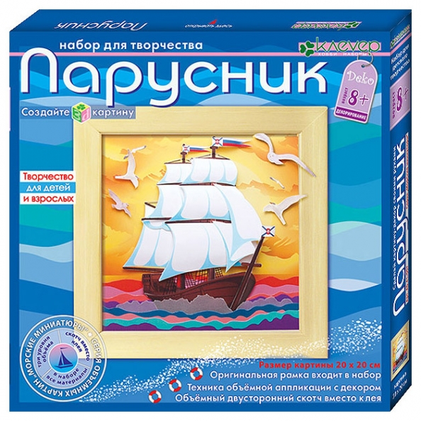 Трудно представить себе что-то более романтическое, чем парусник. Конечно, путешествие по морю само по себе - романтика, но парусник - это вершина романтических мечтаний. Мальчишки грезят парусниками с детства, читая Жюль Верна или Джека Лондона. А когда есть возможность самостоятельно изготовить декоративную картину с изображением парусного судна в технике аппликации - это просто захватывает дух. Набор для изготовления картины "Парусник" поможет быстро и без сложностей создать декоративную картинку в 3D-технике.