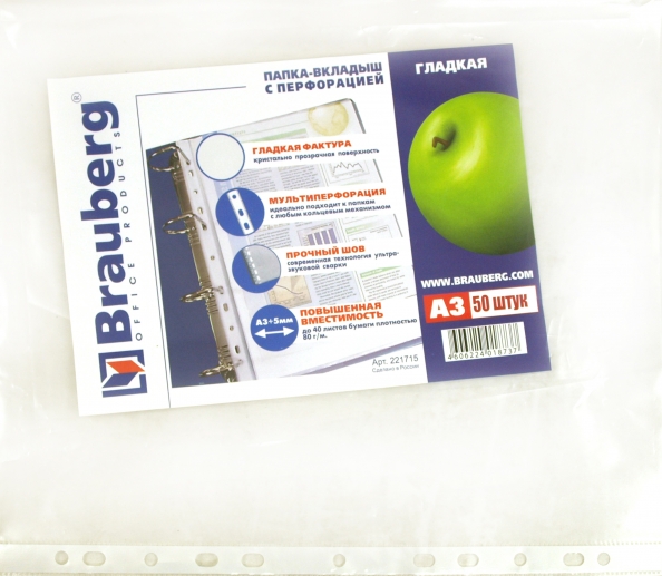 Папка-файл перфорированная BRAUBERG подходит для подшивки документов в папки с любым кольцевым механизмом и скоросшивателем.