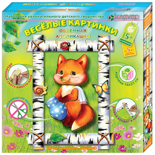 Работа с набором "Ну-ка, умываться, лисёнок!"- это увлекательный процесс творчества и, как результат, замечательное изделие. Наклеиваем послойно, шаг за шагом детали - и персонаж на картине становится объёмным, как будто оживает! Работа над картиной развивает пространственное воображение, усидчивость, мелкую моторику и аккуратность. Все персонажи серии "Весёлые картинки"- милые, добрые и красочные, а картины с ними отлично украсят детскую или станут оригинальным подарком!