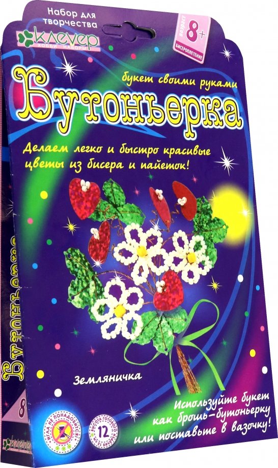 Комплектация: бисер цветной, проволока для бисероплетения, пайетки цветные, лента атласная, пошаговая инструкция внутри упаковки.