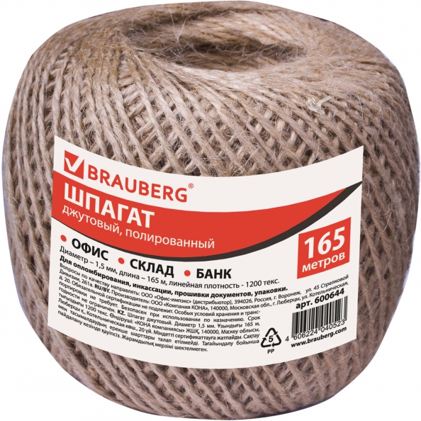 Шпагат джутовый банковский (165 м) (600644); Brauberg, 2015