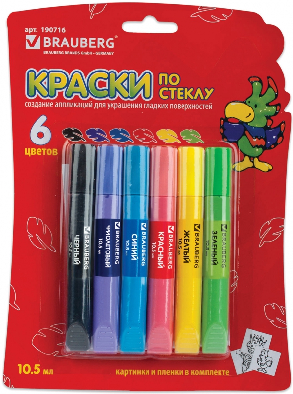 Краски по стеклу "Kids Series" (6 цветов) (190716); Brauberg