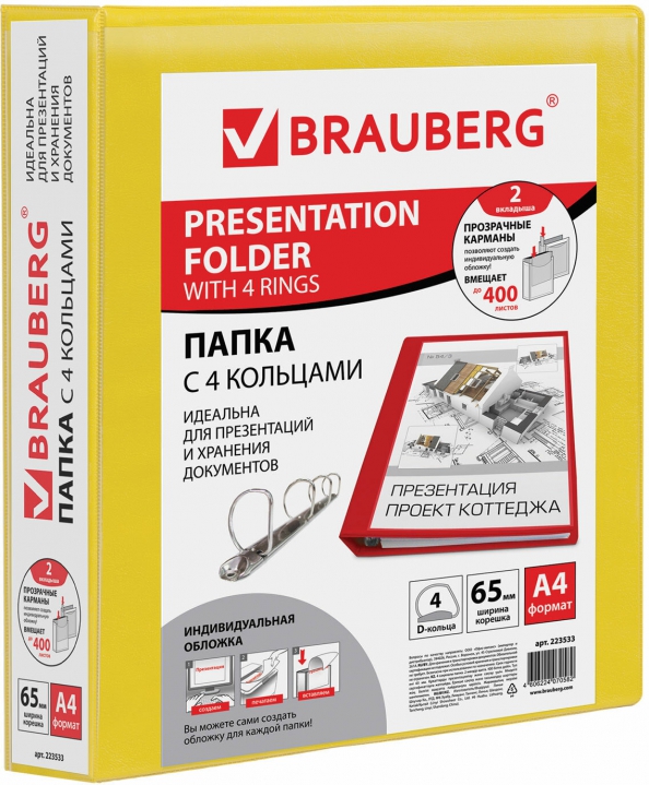 Папка 4 кольца (желтая, 300 листов) (223533); Brauberg, 2016