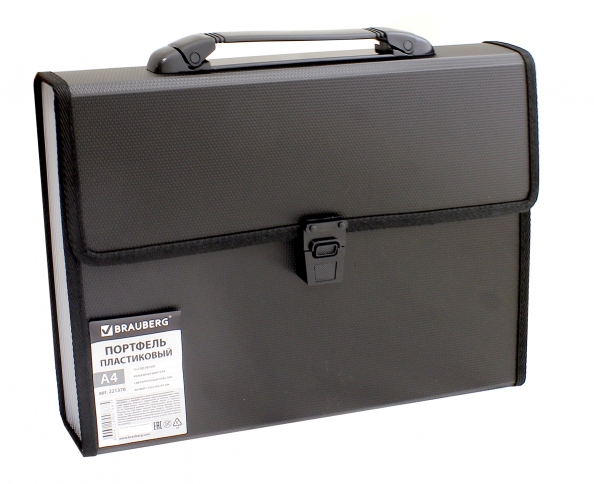 Портфель, 13 отделений. Пластик с текстильной окантовкой. А4. Черный (221378); Brauberg