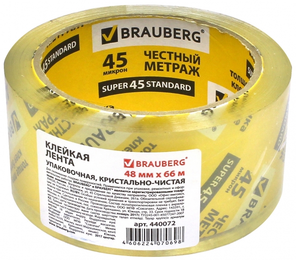 Клейкая лента 48мм х 66м, 45мкм (440072); Brauberg, 2017