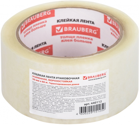 Клейкая лента 50мм х 66м, прозрачная, 50мкм (440112); Brauberg, 2017
