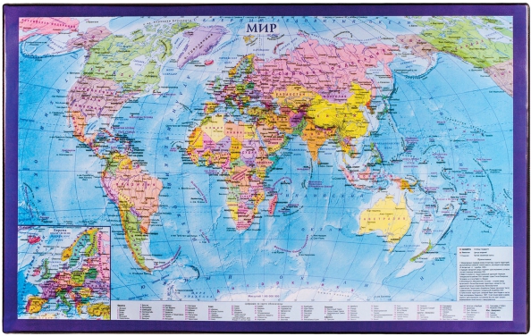 Настольное покрытие для письма обеспечивает защиту стола от повреждений и повышает комфорт при письме, а также позволяет всегда иметь под рукой карту мира.