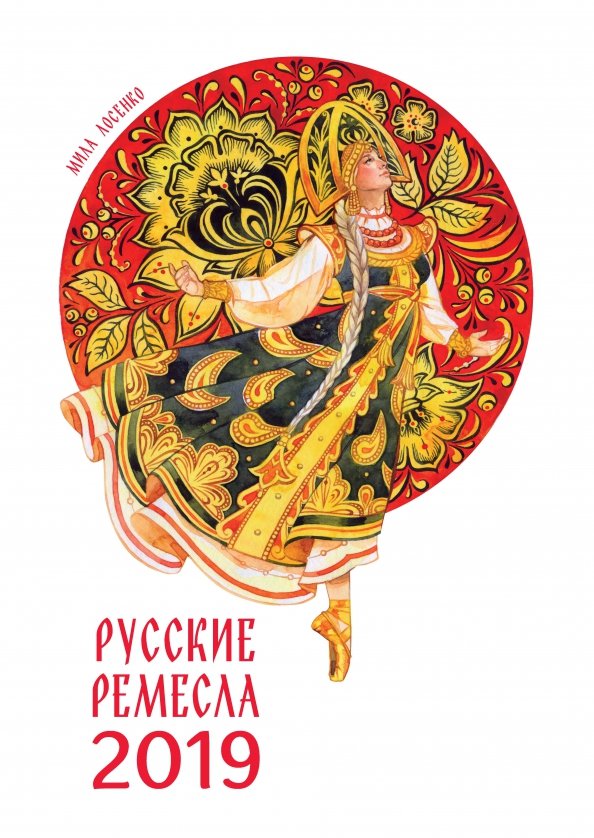 Сказки, балет, народные росписи, ремесла и костюмы — художнице Миле Лосенко невероятным образом удалось соединить воедино эти феномены русской культуры. Героини ее рисунков — танцовщицы в народных костюмах. Одновременно они напоминают жительниц разных губерний далеких лет, сказочных царевен и балерин всемирно известных «Русских сезонов». Сочетая нежную акварель с тончайшей графикой, автор мастерски вплетает живую пластику танца в к красочные узоры народных росписей, создавая замечательные стилизации под русскую старину. Эти яркие, самобытные образы, словно душа русского народа — насыщенны по содержанию, охвачены чувствами и полны жизни. Они буквально взорвали интернет и положили начало целой серии авторских работ под названием «Русские ремесла», часть из которых представлена в этом календаре.
