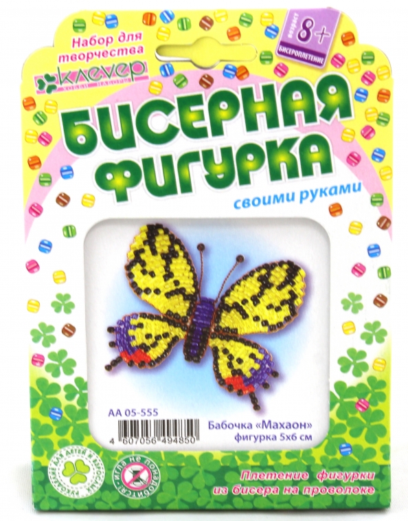 Набор для детского творчества. Изготовление фигурки из бисера "Бабочка-махаон" (АА 05-555); Клевер