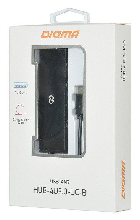 Хаб (разветвитель) DIGMA , черный HUB-4U2.0-UC-B (размер: 35х103х12 мм)
