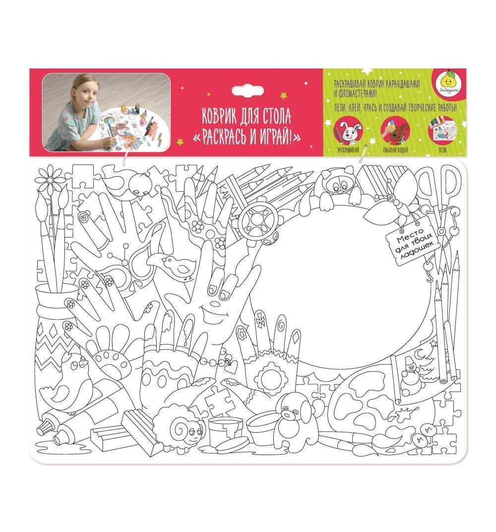 На коврике уже нарисованы картинки, которые нужно раскрасить. Такой коврик прекрасно подойдет для игр и творческих занятий, например, лепки или рисования. Он не скользит, надежно защищает стол от пятен и очень легко отмывается. Все коврики данной серии сделаны из специального прочного материала, который безопасен для детей и устойчив к внешним воздействиям. Для творчества можно использовать любой вид раскрашивания: карандаши, фломастеры, краски и даже пластилин!