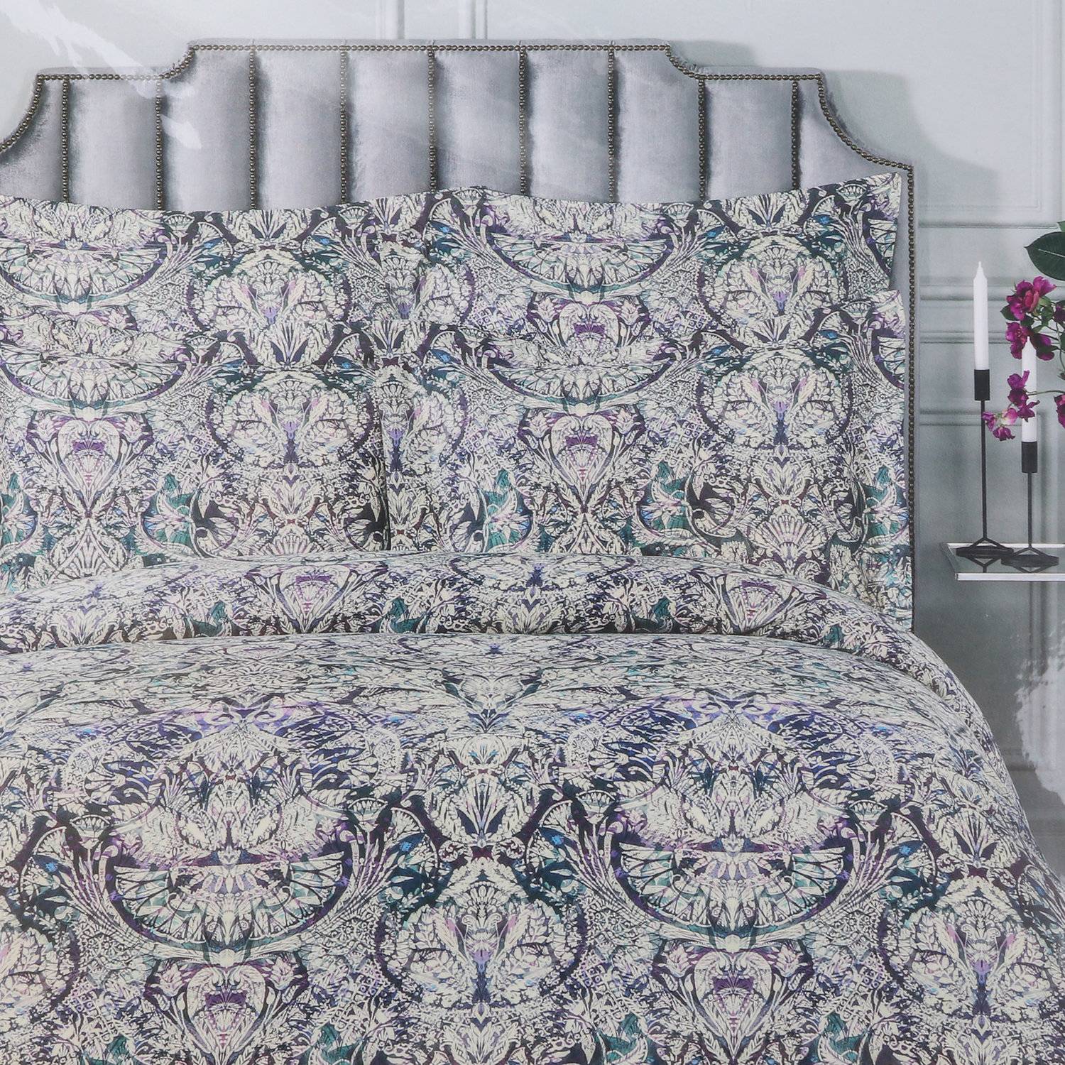 В постельном белье Togas "Марелла" соединились очень красивые оттенки фиолетового: насыщенно-лиловый, нежно-сиреневый, сливовый, а также пронзительный, чистый цвет небесной лазури. Смешение этих красок в рисунке комплекта напоминает размытые оттенки в удивительном стекле, создаваемом венецианскими мастерами с острова Мурано на протяжении столетий. Фон материала пододеяльника и однотонная простыня нежного цвета айвори подчеркивают яркие, насыщенные тона фиолетового в узоре. Это постельное белье изготовлено из мягкого, шелковистого бамбукового волокна.