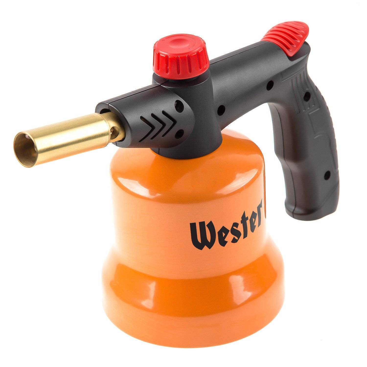Газовая паяльная лампа Wester рассчитана на автономную работу от одноразовых газовых баллонов. Предназначена для различных монтажных и строительных работ: пайка медных, латунных, бронзовых труб; отогрев замерзших деталей, замков, водопроводных труб, фитингов; нагрев лакокрасочных и напольных покрытий, для их удаления; для облегчения изгибания различных металлических предметов, труб, кромок деталей, проволоки, пластин жести; разборка ржавых соединений стальных и чугунных труб; для (ослабления) локального нагрева соединений и болтов; нагрев кровельных и наплавляемых материалов; подогрев картера двигателя в зимних условиях; обжиг древесины; розжиг костра, угля, печей, камина и многого другого.