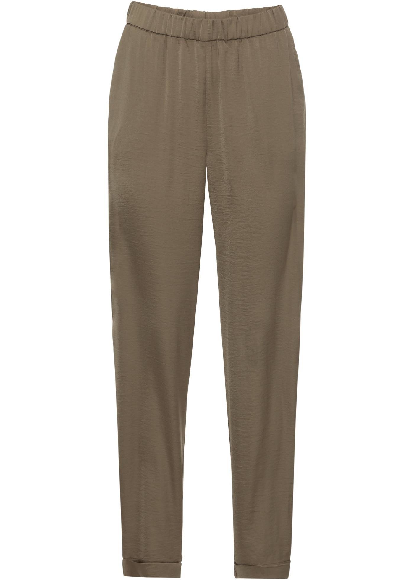 Воздушные брюки без застежки. По бокам карманы. Пояс на резинке. Длина по внутреннему шву ок. 79,5 см (разм. 38).