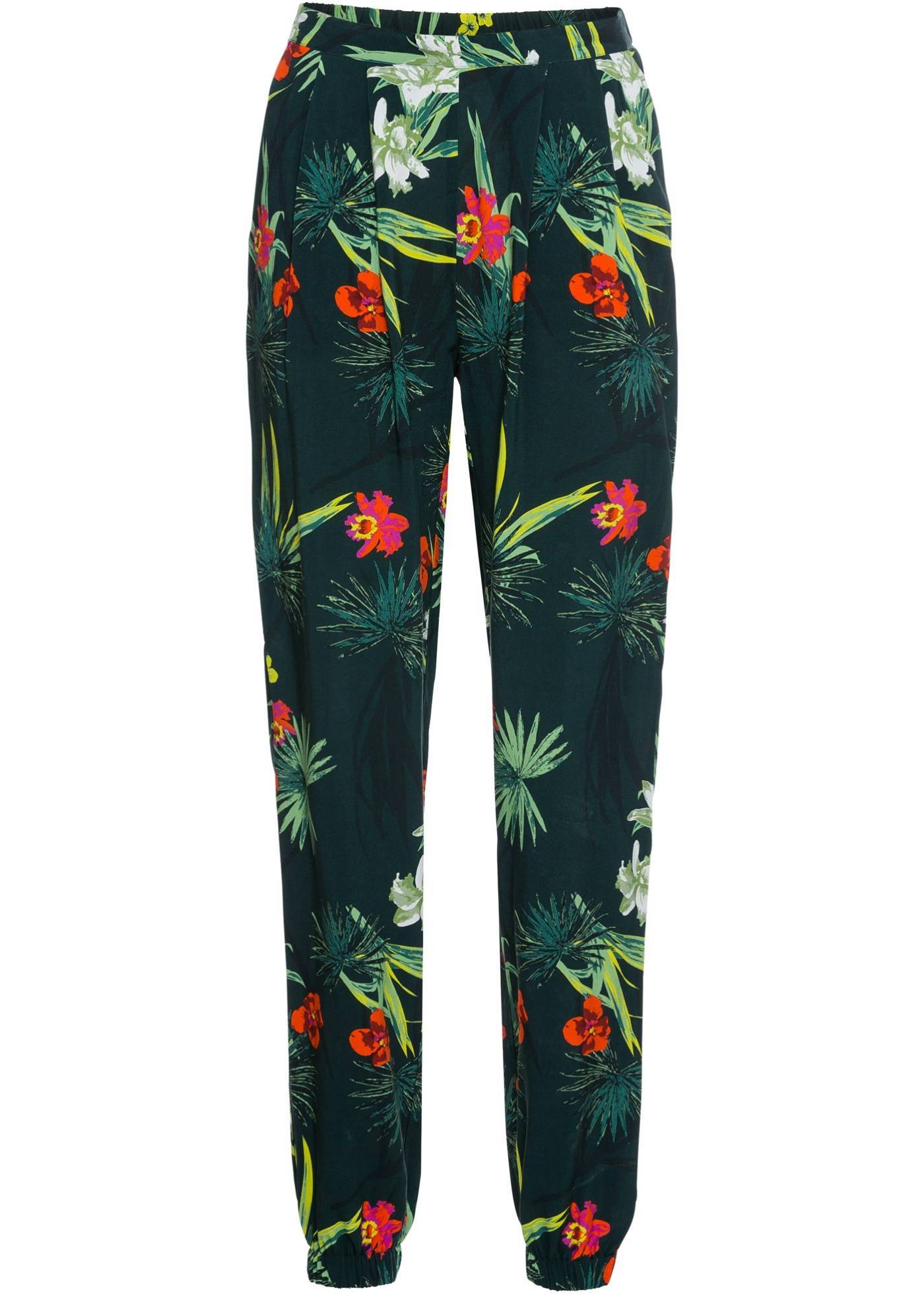 Цветочные брюки на поясе с эластичной вставкой в задней части. Удобная модель, которую легко надевать и снимать. Длина по внутреннему шву ок. 75 см (разм. 36).