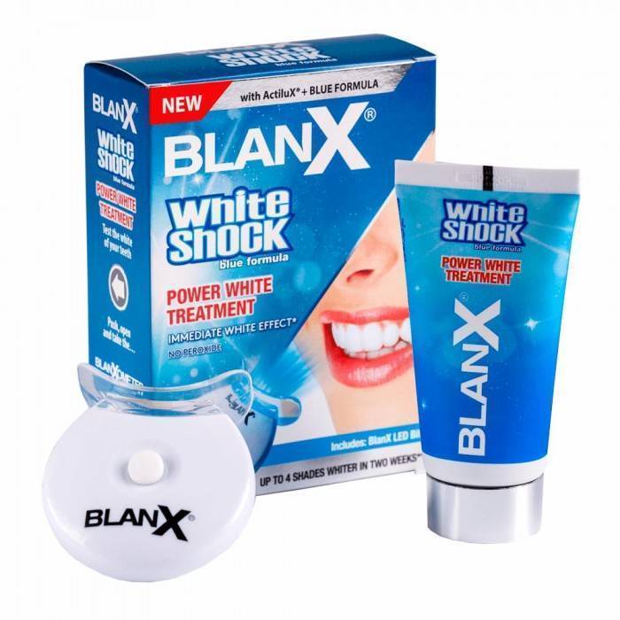 Отбеливающая зубная паста BlanX White Shock Treatment со светодиодной лампой-индикатором – одно из наиболее безопасных средств на мировом рынке для отбеливания зубов. Паста не содержит ни агрессивных абразивных веществ, ни пероксидов. При этом ощутимый эффект от применения BlanX White Shock виден уже после однократного применения! Секрет такого эффекта заключается в применении оригинального способа отбеливания. Рекомендована для домашнего отбеливания и укрепления зубной эмали.