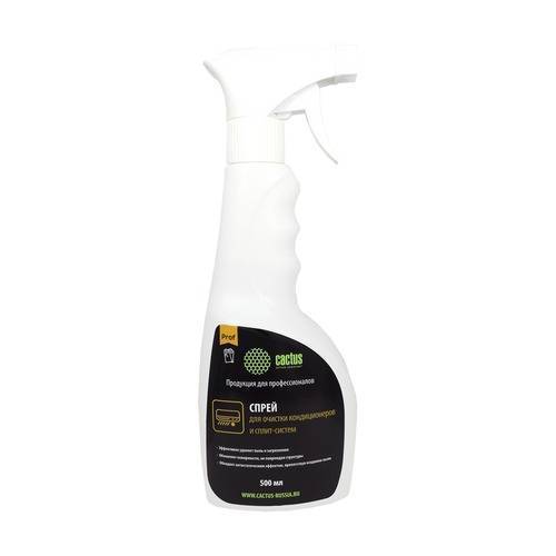 При покупке кондиционера сразу посоветовали купить любой спрей для чистки. Выбирал по цене, вроде нормально очищает поверхность. Пока только внутренний блок чистили пыль убирает, спиртом сильно не разит