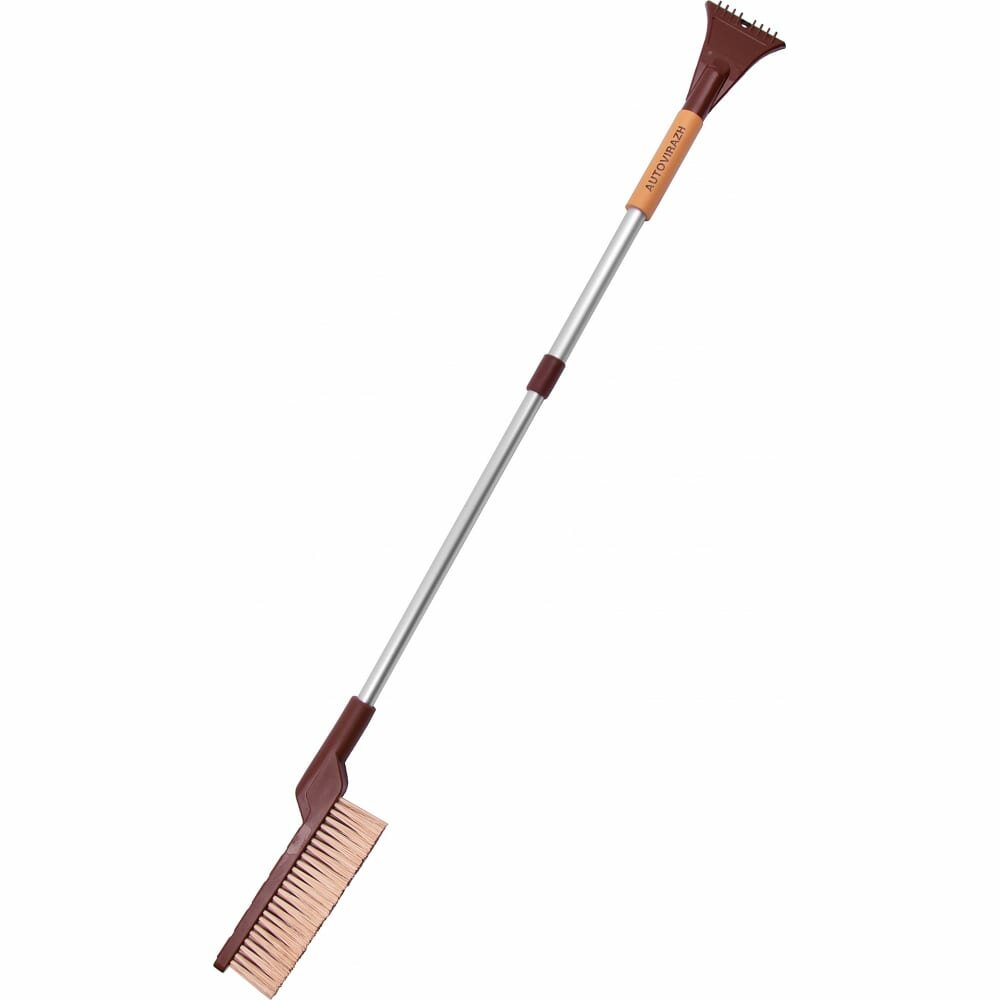 Телескопическая щетка-скребок Autovirazh пригодится каждому автомобилисту в холодное время года. Данная модель изготовлена из качественного материала, оснащена удобной ручкой и комфортно располагается в руке. Класический телескоп поворотного действия с улучшенным надёжным механизмом фиксации, трёхслойная распушёная щетина, Материалы: Алюминий и высококачественный морозостойкий пластик.