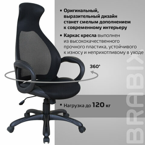 Кресло офисное BRABIX "Genesis EX-517", пластик черный, ткань/экокожа/сетка черная, 531574