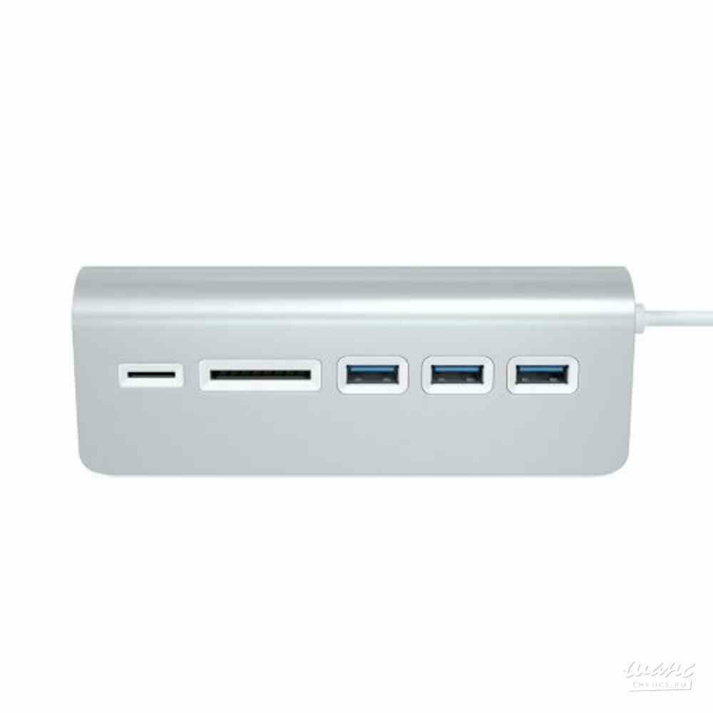 Стильный и функциональный хаб Satechi Aluminum USB 3.0 Hub & Card Reader является невероятно удобным и высокоскоростным устройством, позволяющим расширить возможности вашего ПК или ноутбука. Аксессуар рассчитан на подсоединение множества мобильных приборов с интерфейсами USB 3.0 на 3 портах, а также позволяет читать SD и MicroSD карты памяти. Дизайн Satechi Aluminum USB 3.0 Hub & Card Reader обладает удобной конструкцией и оптимальным углом расположения портов, что позволяет расположить док-станцию на рабочем столе и легко подсоединить другие устройства. Для подключения к ПК или ноутбуку используется встроенный кабель USB-A. Функциональность Многопортовое устройство гарантирует достаточно высокую скорость передачи информации до 5 Гбит, что почти в десять раз превышает скорость интерфейса USB 2.0. Переносить видео высокого разрешения, фотографии и другой медиаконтент с мобильных устройств можно на любой компьютер на базе ОС Windows 10/8/7, Vista, XP / 2003/2000, ME, Mac OS X и Linux 3.0 и более поздних. Особенности: Компактные габариты Три высокоскоростных порта USB 3.0 Слоты для карт памяти Встроенный кабель USB-A