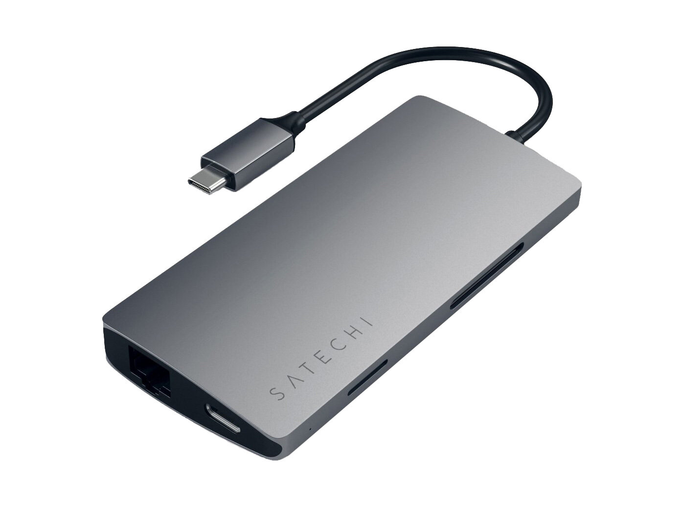 USB-концентратор Satechi Aluminum Multi-Port Adapter V2. Интерфейс USB-C. 3 порта USB 3.0, 1 порт 4K HDMI, 1 порт Ethernet RJ-45, SD/micro-SD кардридер