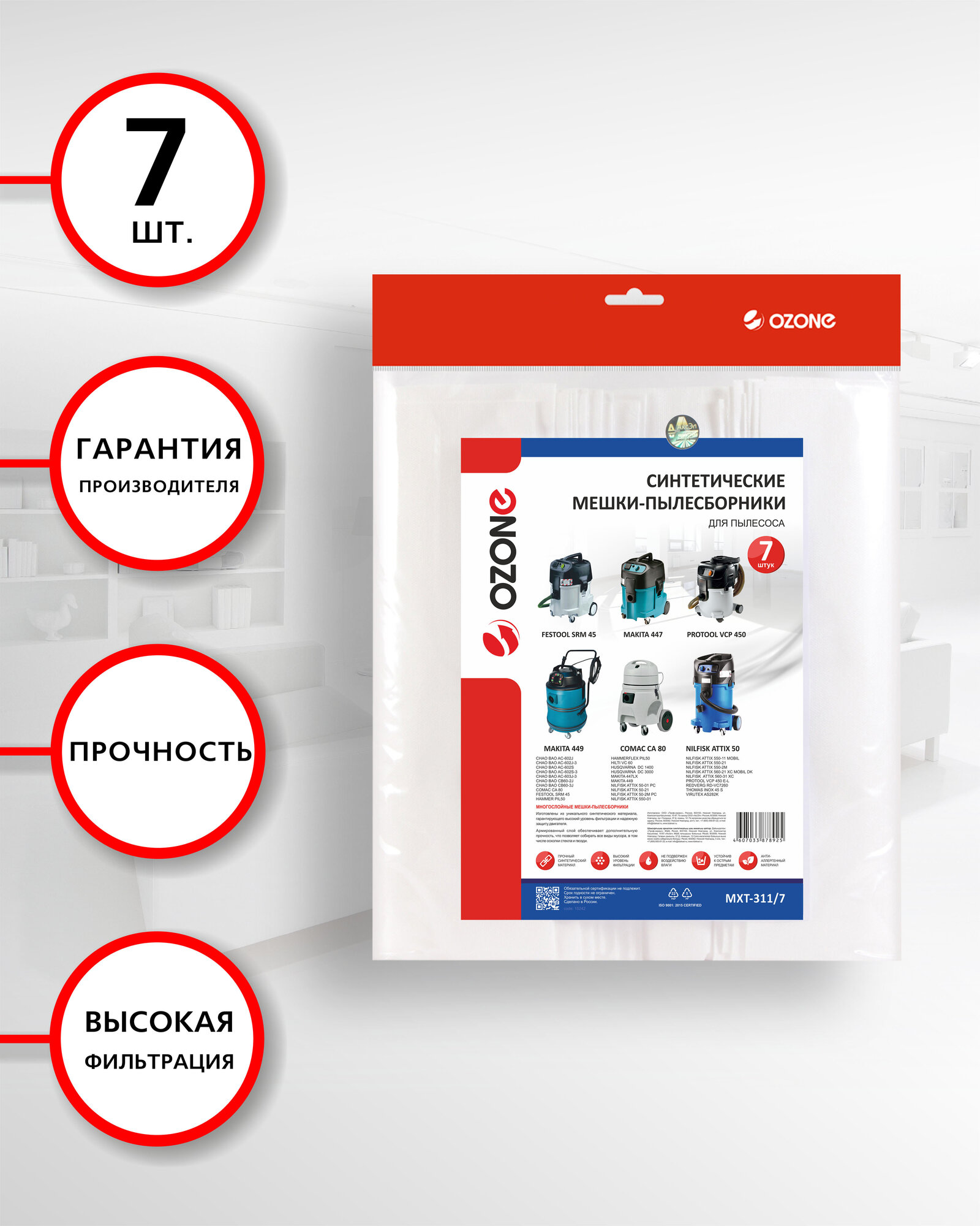 Ozone подходит для пылесосов Husqvarna, Nilfisk, Hammer, Comac, Festool, Protool, Makita.