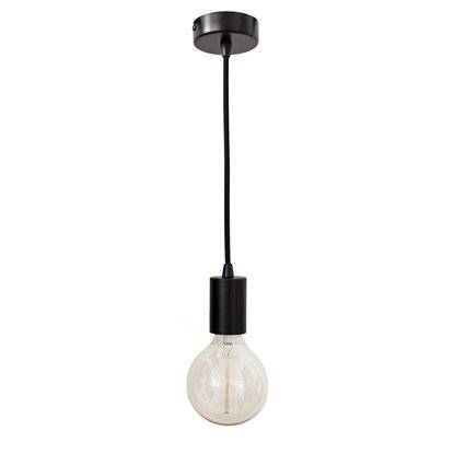 Универсальный подвесной светильник под открытую лампу черного цвета с тканевым черным проводом.