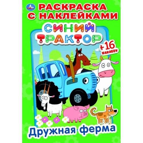 Раскраска с наклейками "Синий трактор. Дружная ферма" ТМ "УМка" : - картинки для раскрашивания тщательно прорисованы - 16 цветных наклеек. Ребёнку будет интересно узнать, что растёт в огороде. К каждой странице раскраски есть стишок про то, что изображено на ней. Посмотри на яркую наклейку, раскрась свою картинку также или подбери цвета по-своему. Раскраска из серии "Наклей и раскрась" с 16-ю наклейками в комплекте облегчит процесс обучения малыша и подготовит его руку к письму. Яркие наклейки, персонажи мультфильма и увлекательные стишки сделают рисование увлекательным. Раскраску удобно брать с собой в дорогу. Раскраска ТМ "УМка" имеет 5 развивающих функций: - развитие моторики рук - подготовка руки к письму... дальше " - сенсорное развитие - развитие внимания - развитие речи.
