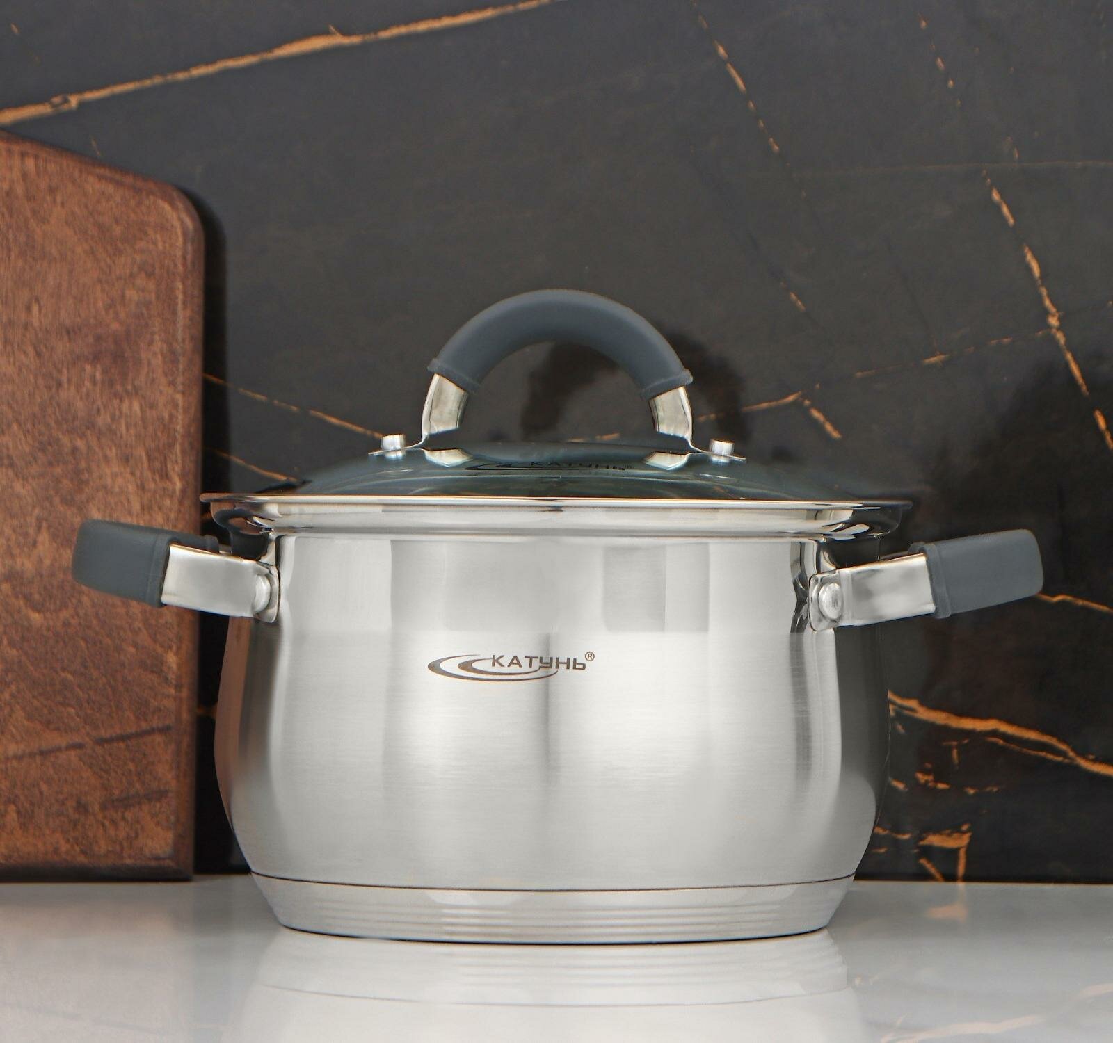 Хорошая, крепкая кастрюля, отличный объем для семьи из 4х человек, можно мыть в посудомоечной машине. Бренд Катунь рекомендую.