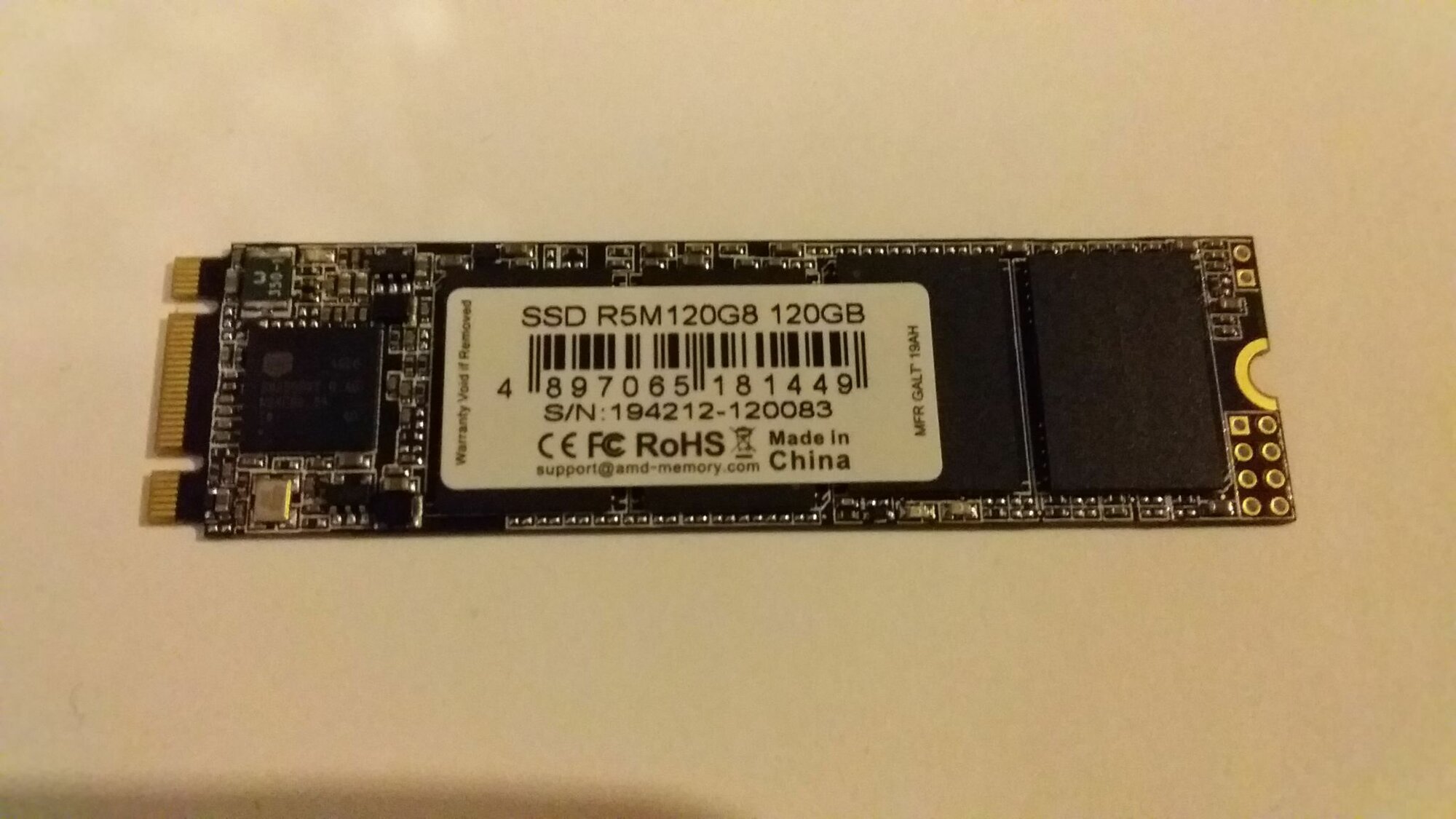 120-гигабайтный SSD M.2 накопитель AMD Radeon R5 Series [] является отличным вариантом для использования в качестве системного диска. Этот компактный (а использование интерфейса M.2 автоматически подразумевает компактность устройства) накопитель, соответствующий форм-фактору 2280, использует память TLC 3D NAND. Устройство подойдет для установки в мобильные и стационарные компьютеры, допускающие использование M.2-совместимой техники. SSD M.2 накопитель AMD Radeon R5 Series [] характеризуется максимальными скоростями последовательноготения и последовательной записи, равными 530 и 330 МБ/с соответственно. Эти показатели обуславливают уровень эффективности, достаточный для качественной работы в составе производительной системы. Как и подавляющее большинство твердотельных накопителей, накопитель AMD Radeon R5 Series [] отличается впечатляющим уровнем надежности, о котором свидетельствует величина MTBF, равная 1.5 миллионамасов. Модель упакована в компактный блистер, украшенный символикой производителя.