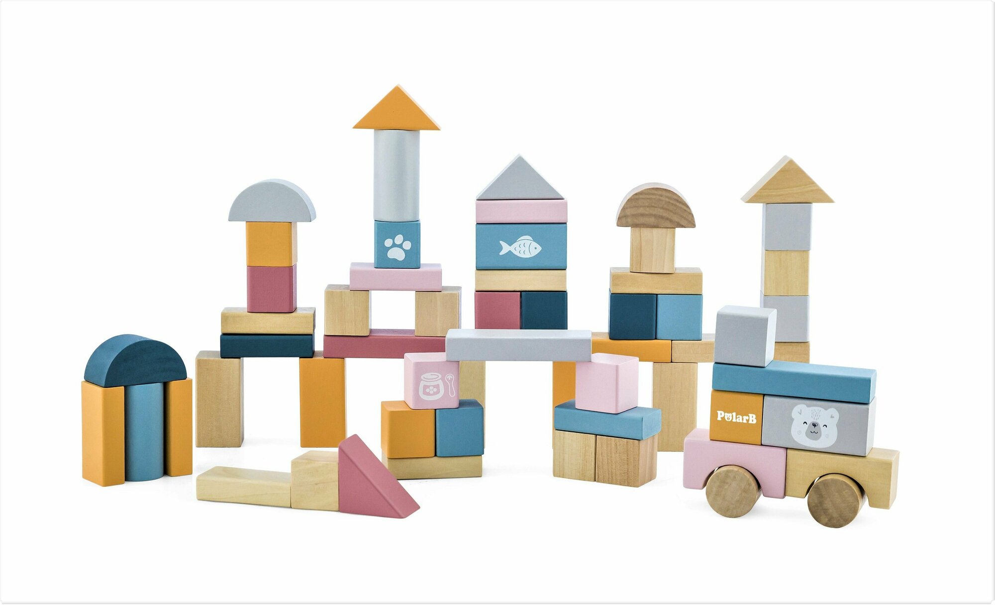 Дети соберут свой первый домик, замок, робота или ракету с кубиками от Viga Toys. Этот набор состоит из 60 деревянных блоков разных форм толщиной 2,5 см.Комплект изготовлен в спокойных цветах с милыми рисунками. Набор кубиков будет интересен детям преддошкольного возраста от 2 лет. Кубики из серии PolarB идеально подходят для развития воображения, зрительно-моторной координации, изобретательности, мышления, любознательности. Играя с развивающими кубиками из дерева, ребенок научится строить, воспринимать пространство, различать цвета, творчески себя проявлять, повысит эмоциональное благополучие. Набор подходит для обучения и полезных игр в рамках методики Никитиных и реджио-педагогики. Кубики Viga Toys серии PolarB Деревянные блоки помогают ребенку в познании мира, дают возможность складывать разнообразные конструкции, развивать координацию глаза-руки. Эти деревянные игрушки приятные на ощупь за счет гладкой фактуры, скругленных краев и углов, веса.Кубики из дерева прочные, долговечные и натуральные. Их легко мыть. Как и все игрушки от Viga Toys, кубики соответствуют стандартам безопасности и качества: европейскому EN71, американскому ASTM.В комплекте 60 деревянных блоков в 7 цветах и 8 формах, ведерко для хранения с крышкой и ручкой, буклет с примерами построек.