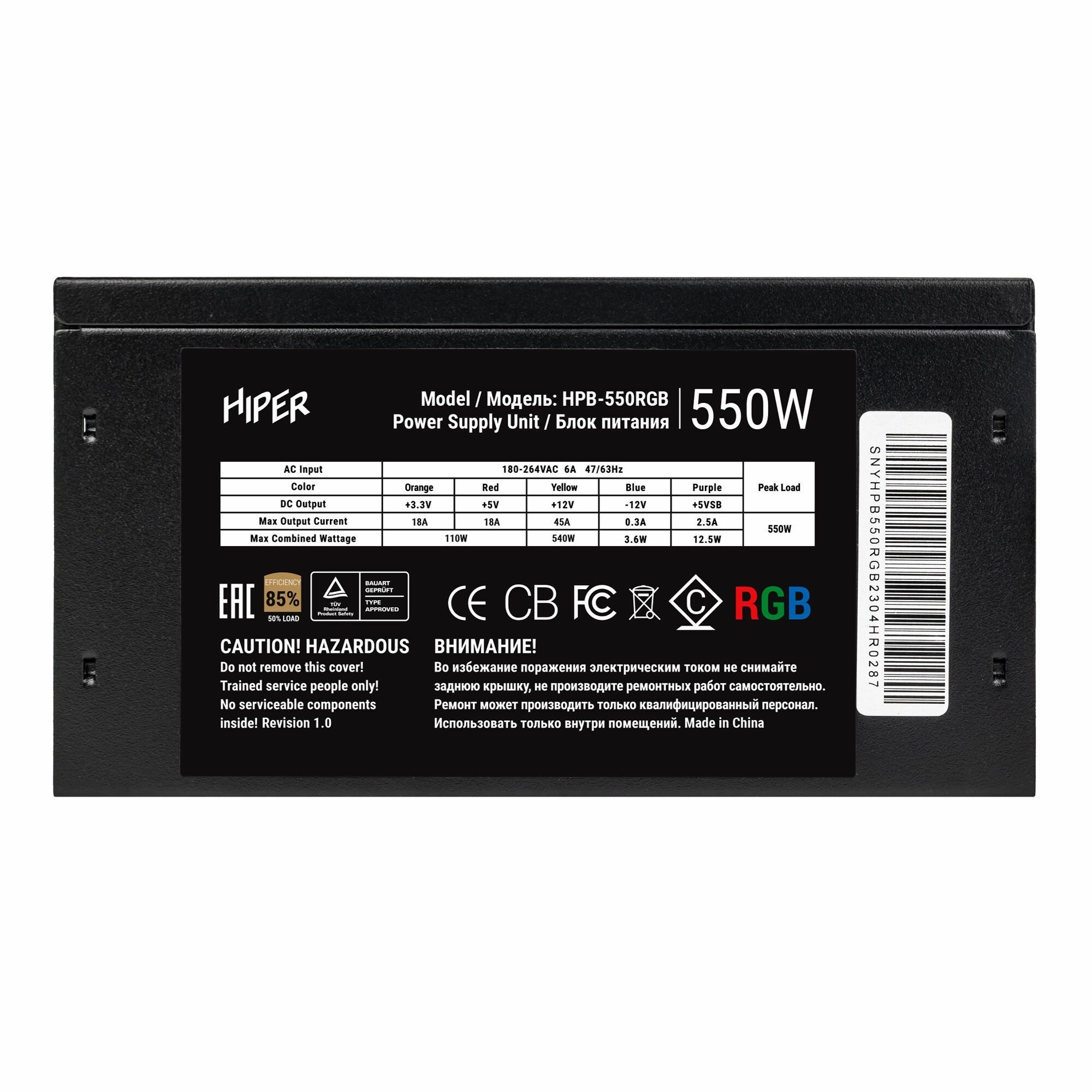 Блок питания HIPER HPB-550RGB 550W черный