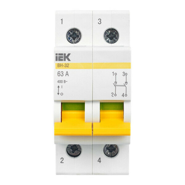 Выключатель IEK ВН-32 2Р MNV10-2-063, ток 63A, полюсов 2П, напряжение 400В, ширина 2мод, белый в упаковке 1шт