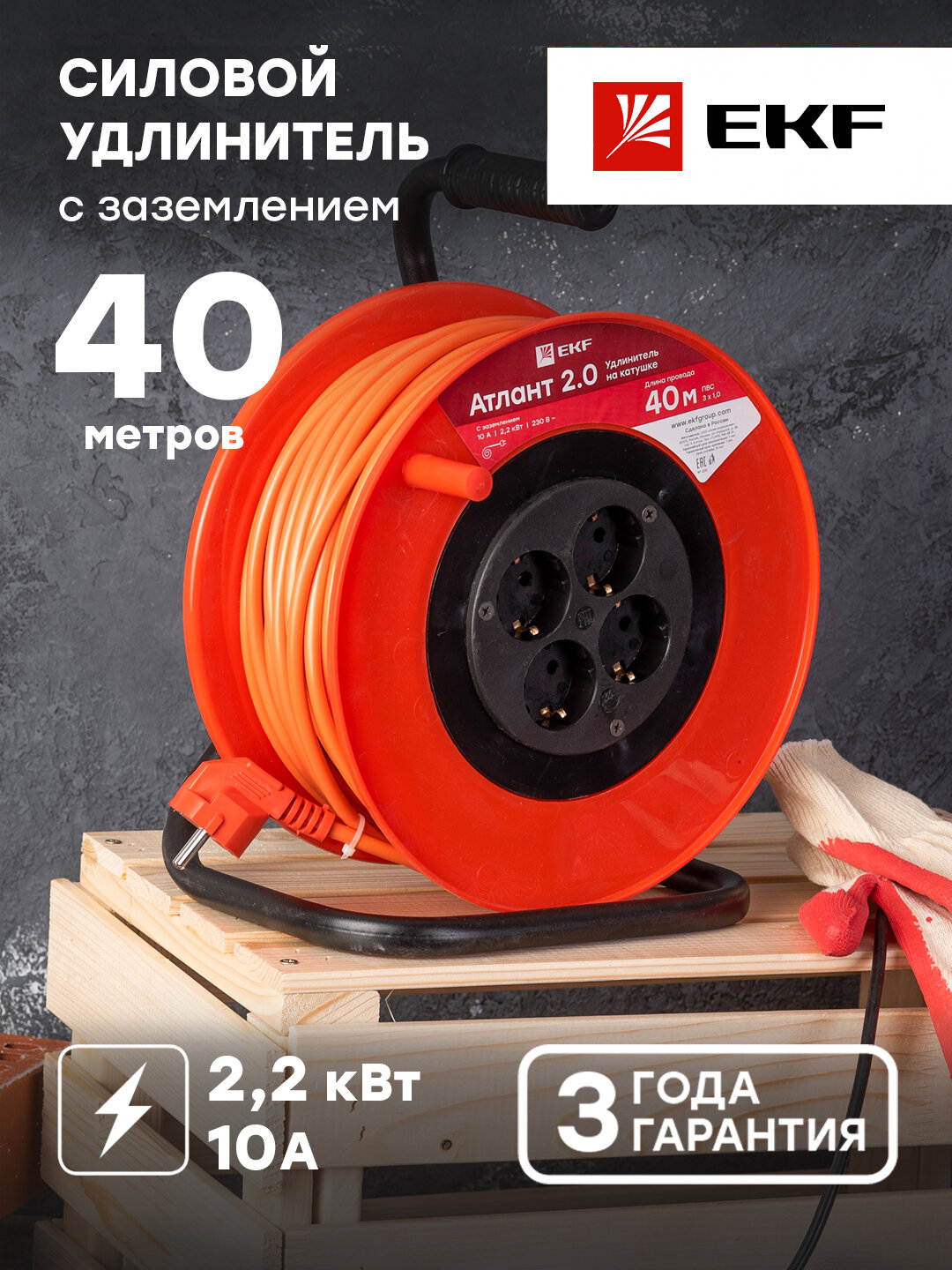 UKA02-10-310-4-40 Удлинитель на катушке "Атлант 2.0" 4 гнезда 40м с заземлением ПВС 3*1,0 10А/2,2кВт PROxima Упаковка (2 шт.) EKF