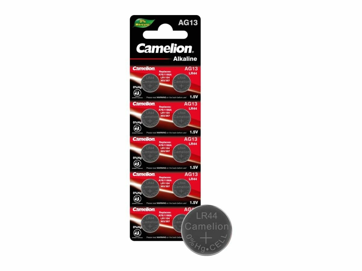 12821 Элемент питания алкалиновый "таблетка" G13 Mercury Free AG13-BP0%Hg 357A/LR44/A76 BL-10 (блист.10шт) Camelion AG13-BP10