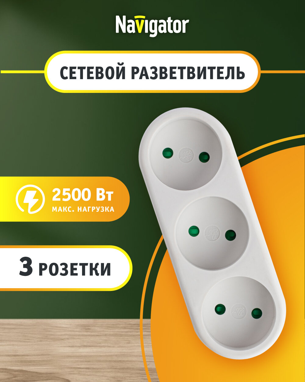 Тройник Navigator —это удобное и практичное устройство, которое позволяет подключить одновременно до трех электрических приборов к одной розетке