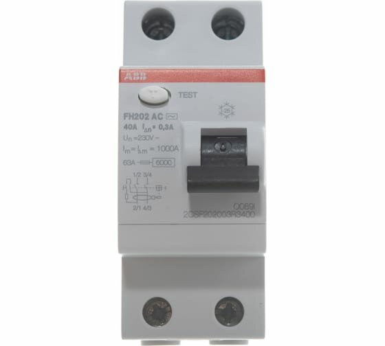 FH200 2CSF202003R3400 Выключатель дифференциального тока двухполюсный 40А 300мА (тип AC) ABB