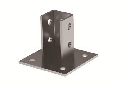 Крепление к потолку BSF-41, применяется для монтажа профилей: BPL-41, BPM-41, BPV-41, BPD-21; организации подвеса кабельной трассы; в качестве напольной опоры. В основании 4 отверстия под метизы М10. Противокоррозионное цинкнаполненное покрытие повышает с.