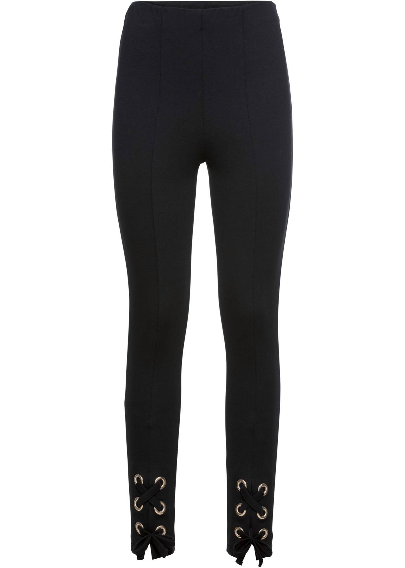 Узкие брюки со стильной шнуровкой и тремя люверсами спереди по низу брючин. Длина по внутреннему шву ок. 71,5 см (разм. 36/38).