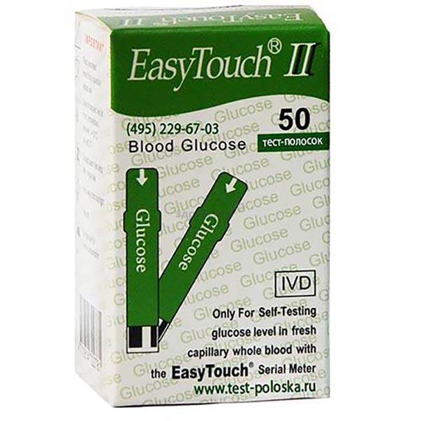 Срок годности: 12.2023 годТест-полоски Изи-Тач Глюкоза - удобные и точные экспресс-тесты, предназначенные для измерения содержания сахара в капиллярной крови. Расходники совместимы со всей линейкой многофункциональных анализаторов Easy Touch (GCHb, GCU, GC). Просты в использовании, позволяют получить результат всего за 6 секунд.Тест-полоски Изи Тач Глюкоза и их особенности:1. Анализ выполняется по электрохимической технологии. 2. Это точный метод, погрешность не больше 5%. Используется фермент глюкозодегидрогеназа, нечувствительный к мальтозе, галактозе, витамину С. 3. Система изготовлена в соответствии с международными стандартами, выполняет требования ISO 15197.4. Для анализа нужно всего 0,8 мкл крови, а измерение занимает 6 секунд. Используйте самые тонкие ланцеты, забудьте о болезненном заборе крови.5. Благодаря тому, что производятся тест-полоски в КР (Тайвань), по стоимости они остаются одними из самых доступных.Как пользоваться тест-полосками Изи Тач на глюкозу:Анализ максимально упрощен, с ним справится даже ребенок. После открытия новой упаковки с расходниками, вставьте кодировочный чип в глюкометр.Чтобы проверить уровень сахара в крови:1. достаньте полоску из контейнера, вставьте ее в специальный порт многофункционального анализатора;2. проколите кожу, когда анализатор включится, нанесите каплю крови на верхнем торце тест-полоски;3. подождите несколько секунд, когда крови будет достаточно, автоматически начнется обратный отсчет, результат появится на экране.Регулярный контроль глюкозы рекомендован людям, которые:- имеют большой вес, страдают ожирением;- страдают гипертонией;-имеют повышенный холестерин;-ведут нездоровый образ жизни (курение, алкоголь);-плохо питаются;-подвержены стрессам.- имеют в роду диабетиков (кровное родство);-женщины, перенесшие во время беременности гестационный диабет, а также в последствии и их дети;Статистика говорит, что каждый второй человек с диабетом на ранних стадиях болезни просто не подозревает об этом. Часто, особенно при 2 типе диабета, болезнь бывает запущена и диагноз ставится с опозданием. Именно поэтому очень важно обнаружить диабет на ранней стадии, а еще лучше выявить предрасположенность организма к диабету, то есть так называемый преддиабет. Это еще не само заболевание, и на этой стадии болезнь можно отсрочить, а в ряде случаев и предотвратить. Для этого необходимо регулярно проверять уровень глюкозы в крови.