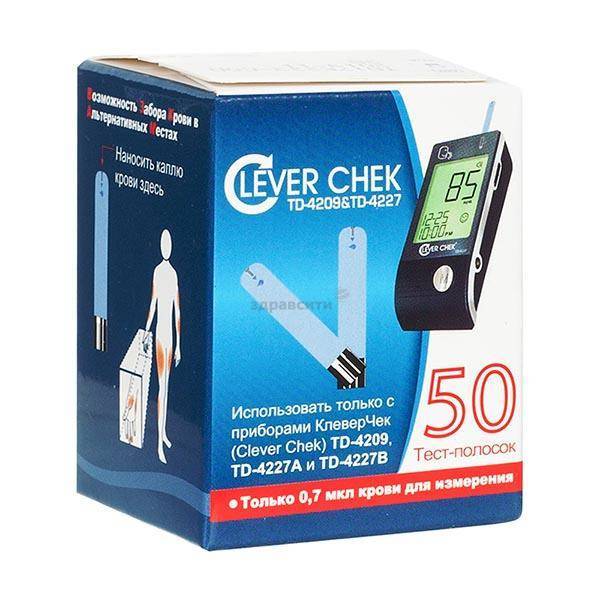 Тест-полоски Клевер Чек Универсальные (Clever Chek) , 50 штук для глюкометров Клевер Чек TD-4209 и Клевер Чек TD-4227. Можно не бояться перепутать тест-полоски. Теперь они единые для всей линии приборов Клевер Чек. В упаковке 50 тест-полосок.