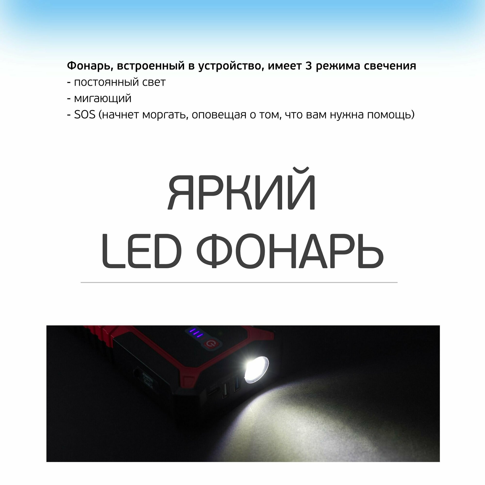 Самое главное преимущество этого портативного пуско-зарядного устройства заключается в его мощности и надежности. С его помощью вы без труда запустите двигатель вашего автомобиля, даже при очень низком заряде аккумулятора. Оно оснащено импульсным принципом работы, что обеспечивает стабильность тока и защиту от замыкания.