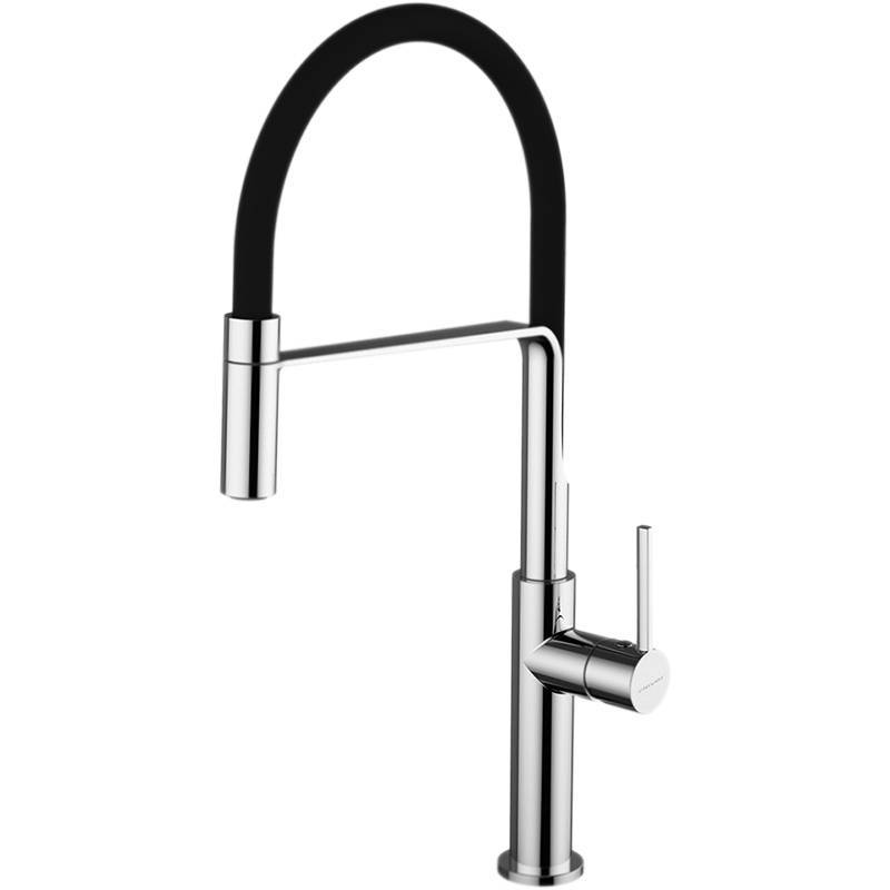 Однорычажный смеситель для кухонной мойки со съемным поворотным изливом, гибкая часть излива - soft touch покрытие, цвет хром, низкий уровень шума, подводка М-10 3/8"х370мм