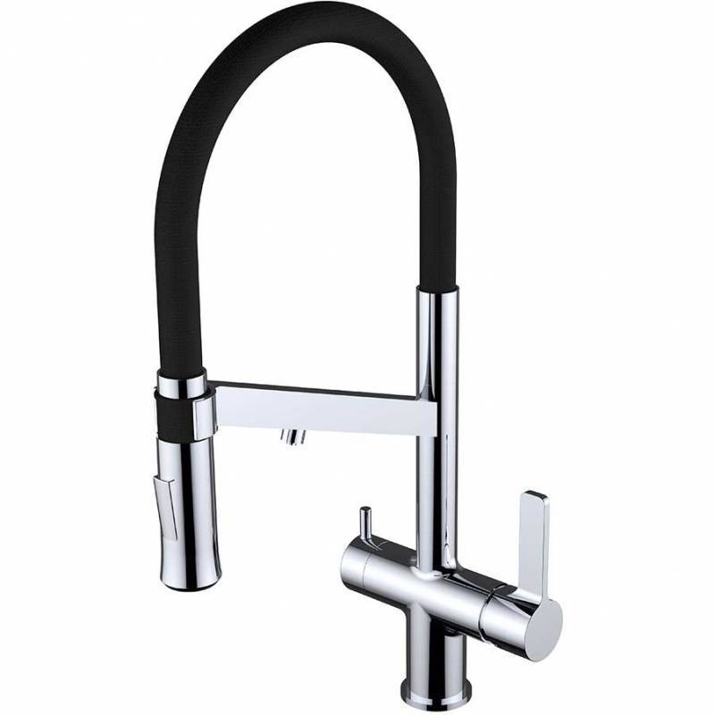 Однорычажный смеситель для кухонной мойки с поворотным выдвижным изливом на 2 положения, экономичный керамический картридж системы EcoNature (экономия воды до 50%), цвет хром, гибкие подводки Sedal М-10 3/8"х370мм