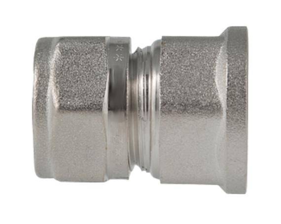 Прямой латунный никелированный фитинг 26х1" для соединения металлополимерной трубы и компонента системы с резьбовым подключением. Резьба фитинга – внутренняя трубная по ГОСТу 6357.