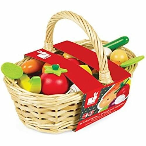 Игровой набор Janod Корзина с овощами и фруктами (J05620) Набор овощей и фруктов в корзинке (24 предмета)
