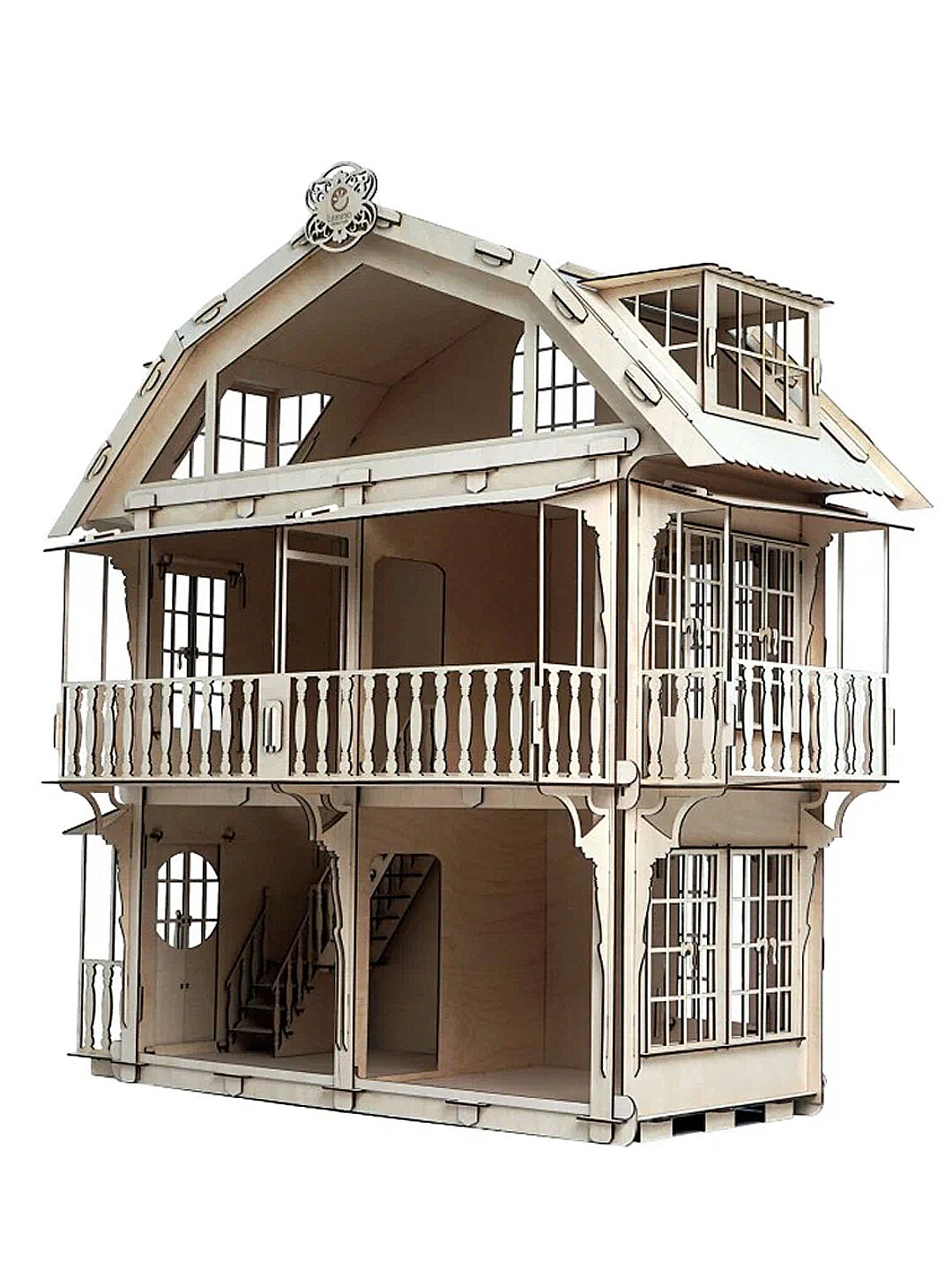 Большой кукольный дом из березовой фанеры, высотою чуть меньше одного метра, приведет в восторг всех девочек