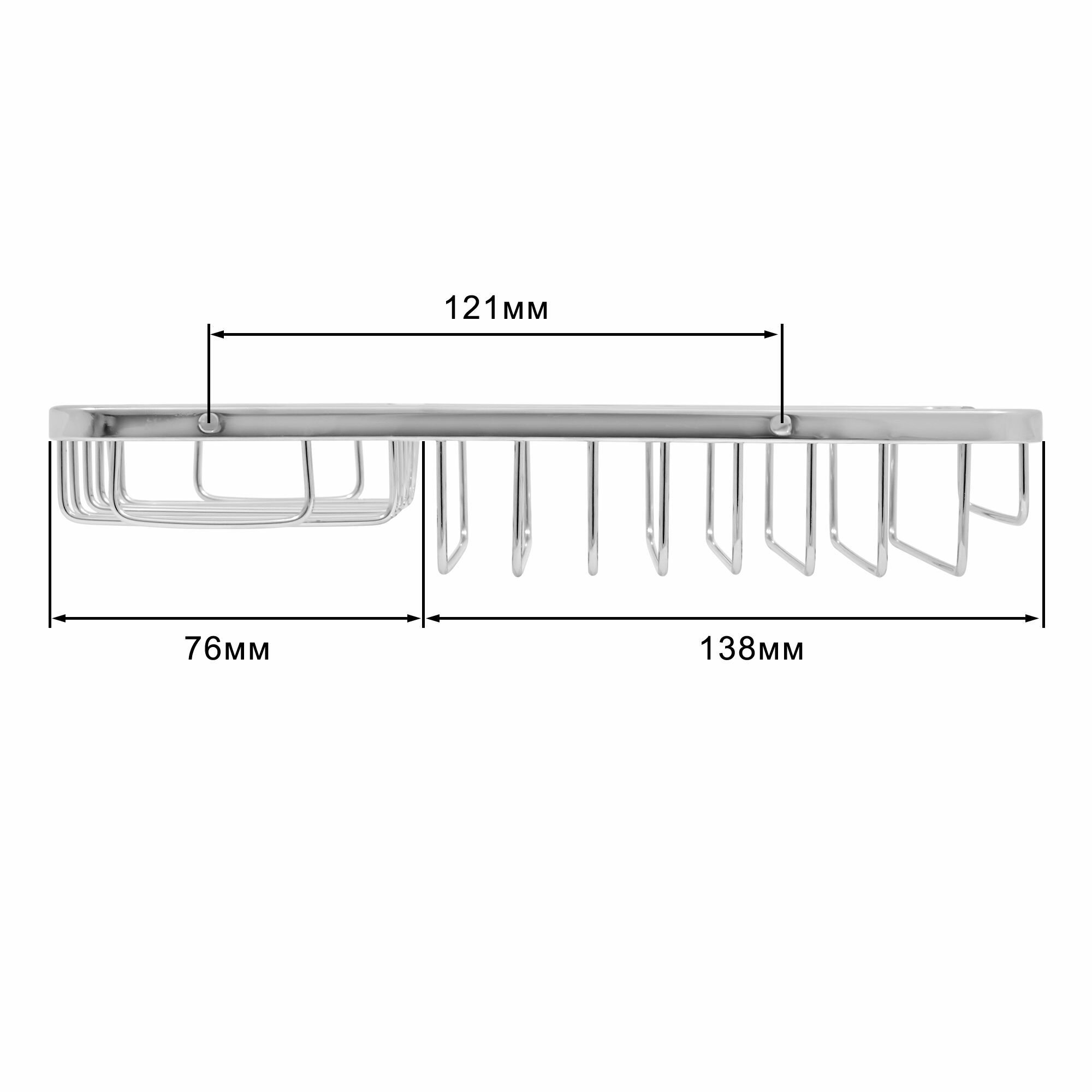 Изделие выполнено из высококачественной нержавеющей стали, что гарантирует долговечность и устойчивость к влаге и коррозии. Хромированный цвет придаёт изделию стильный внешний вид и облегчает уход за поверхностью — достаточно просто протереть, чтобы сохранить блеск и чистоту. Полка рассчитана на размещение повседневных аксессуаров для ванной: мыло, шампунь, гель для душа, зубные щётки или другие необходимые мелочи всегда будут под рукой.