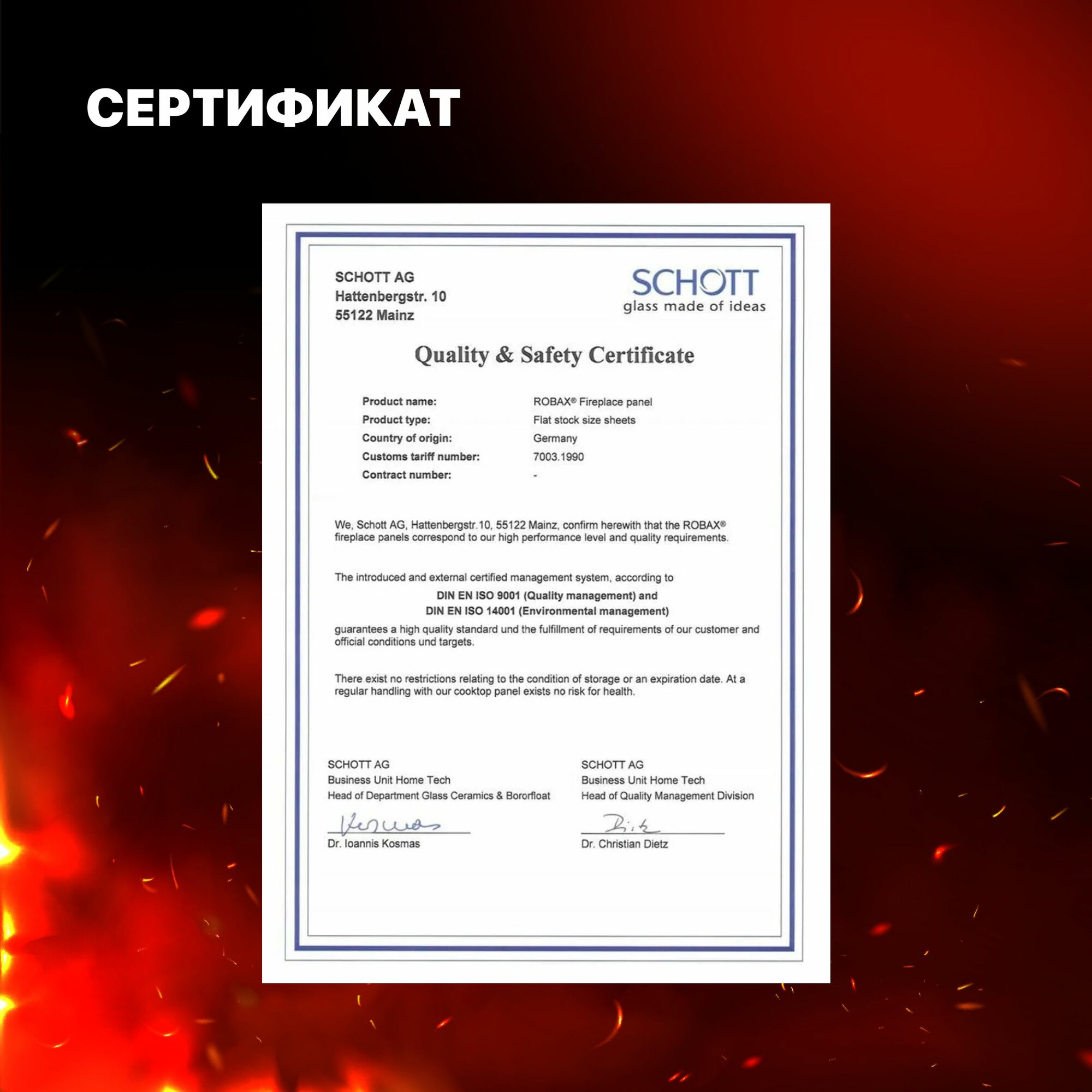 Огнеупорное стекло на дверце камина выдерживает нагрев до 750 оС.